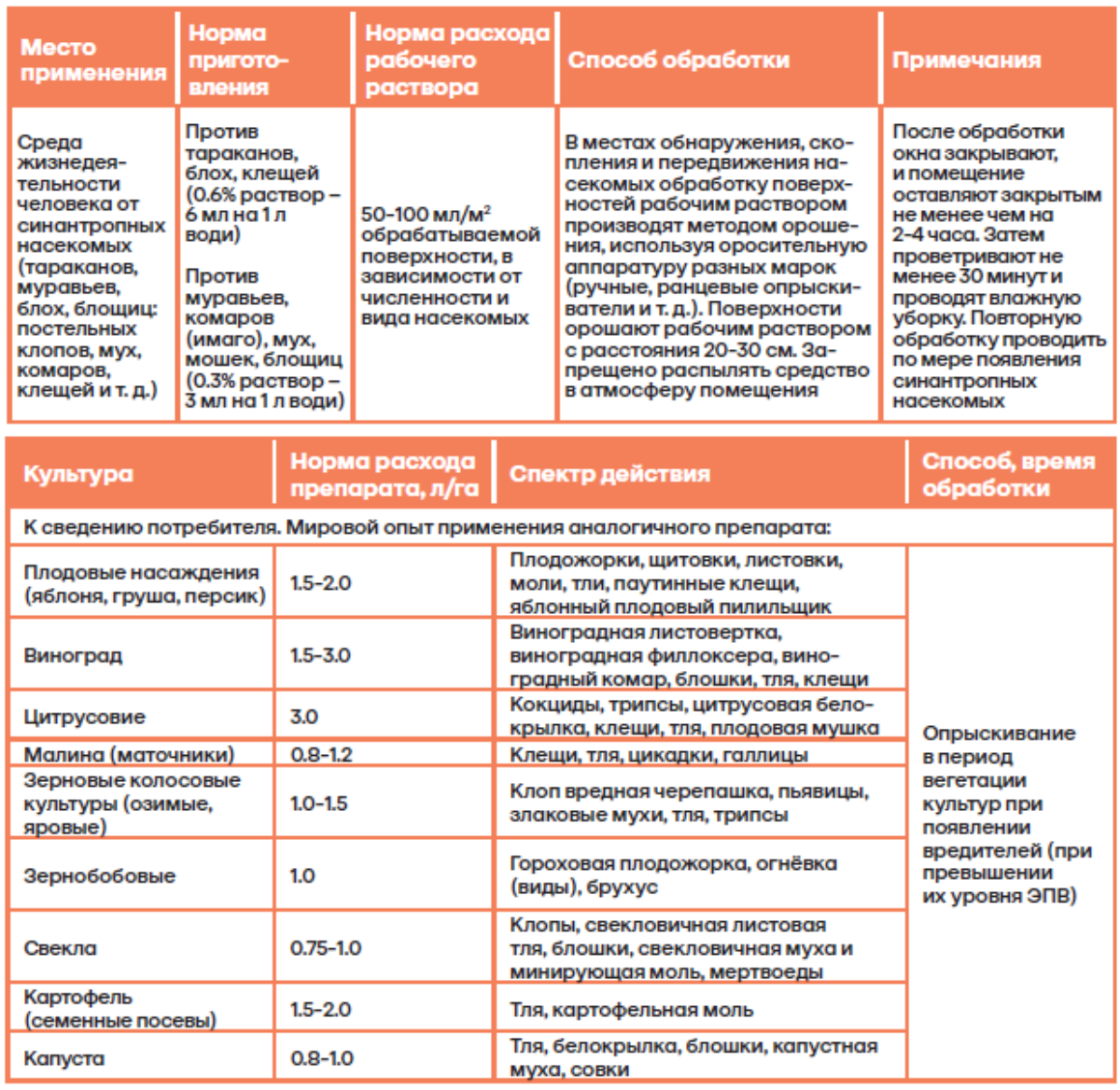 быстрая и эффективная действие на основных стадиях развития насекомых;